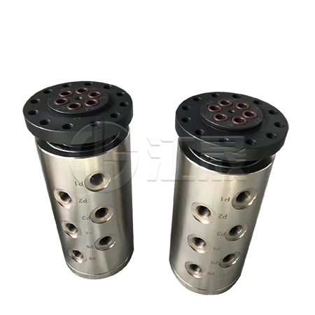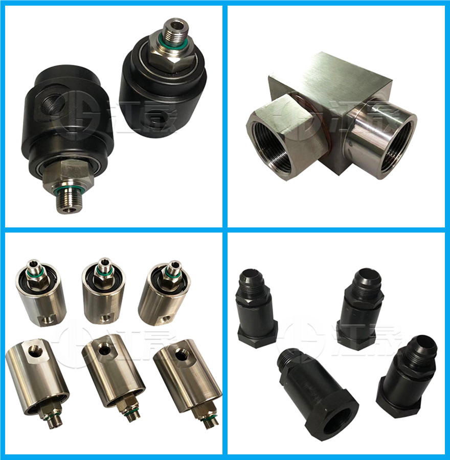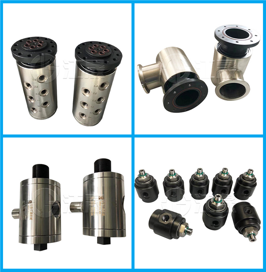 高压液压旋转接头(液压回转接头)可以360度旋转和回转,是旋转设备之上的液压执行机构输送液压介质的设备。是一种专门 用于低速高压多通路设备的一种旋转接头 ,它常用于开卷机,卷取机、液压机械及多通路 高压控制器之类设备。