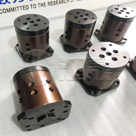 RV 型式的泄油孔配管务必单独接回油槽,以避免 产品背压。油压(液压、气压、气动、润滑油、切削液等)回转分流阀,也叫油路分配器,适用于回转工作台上的夹治具空油压缸,内部经特殊设计,使得回转轴可轻力转动,且不易漏油。I型为单回路,同时控制开夹动作,II型为双回路,可分别控制开夹动作,亦可设计多回路的。泄油口配管务必单独接回油槽,以免产生背压。因我司设计有底部进液压油和润滑油的中心夹具,故设计附润滑油路的回转分流阀,这样就美观,简洁,易于维修。还可以设计多层多功能型的回转分流阀,不泄露,不串油。常用的型号有:U-RV-31H,U-RV-41H,U-RV-51H,U-RV-71H,U-RV-81H,U-RV-91H,U-RV-31A,U-RV-51A,U-RV-71A,U-RV-91A,U-RV-12E,U-RV-42E,U-RV-62E,U-RV-82E等
