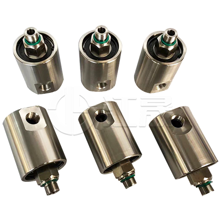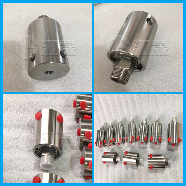 高压液压旋转接头(液压回转接头)可以360度旋转和回转,是旋转设备之上的液压执行机构输送液压介质的设备。是一种专门 用于低速高压多通路设备的一种旋转接头 ,它常用于开卷机,卷取机、液压机械及多通路 高压控制器之类设备。它具有以下特点: