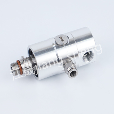 高速主轴中心出水旋转接头:采用“脱开式密封”结构、深孔加工及自动化控制等应用开发的一款流体介质输送的产品,其功能是能够实现将流体(气体或液体)介质由相对静止的管道传输到旋转运动的部件中。