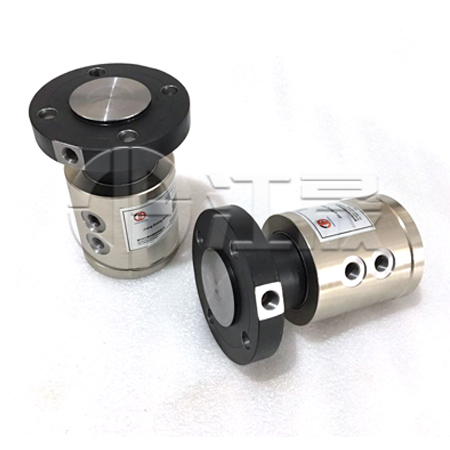 开卷机/卷取机旋转接头由于采用了排出 口,即使密封终磨损也不会发生通道间的串通泄漏。密封 圈具有以下特点:极小的磨擦系数,极低扭矩,极小的磨损 ,极长的密封使用寿命,无爬行、粘滞现象