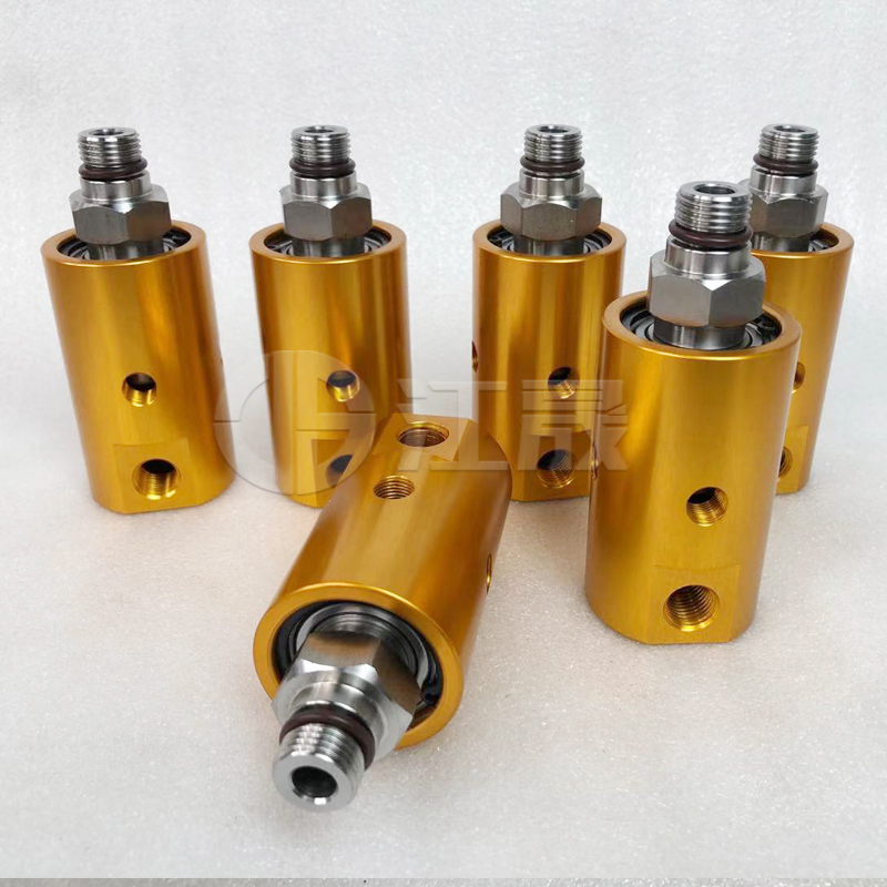 江晟旋转接头是一种旋转的机械密封装置,是为固定管路和旋转滚筒输送和排除热传导介质。应用旋转接头的热传导介质包括蒸汽,水,导热油,液压油和冷却液。加工中心夹具工装