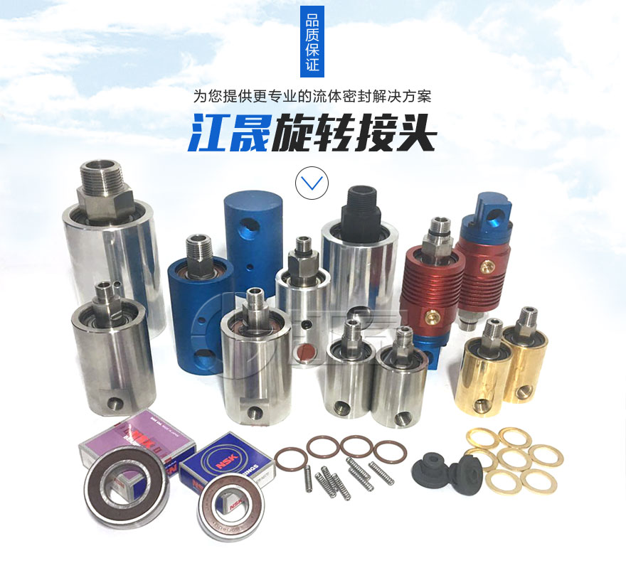 江晟旋转接头选用的壳体材料水用型采用铜合金壳体 ,空气型采用了铝或者铝合金与铜壳体,优点是在高速传动下,散热性能 好,缺点就是容易变形,给维修带来不便。铝合金壳体,内装进口SKF、TIMKEN轴承、浸涕石墨环、304不锈钢碳化硅轴、耐磨氟胶O型圈 适合于 高速旋转设备,使其更耐磨、寿命